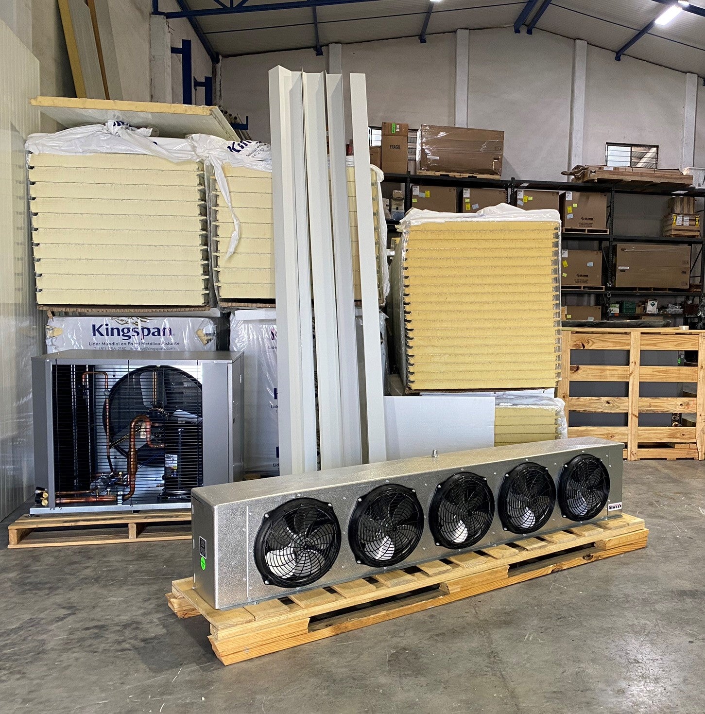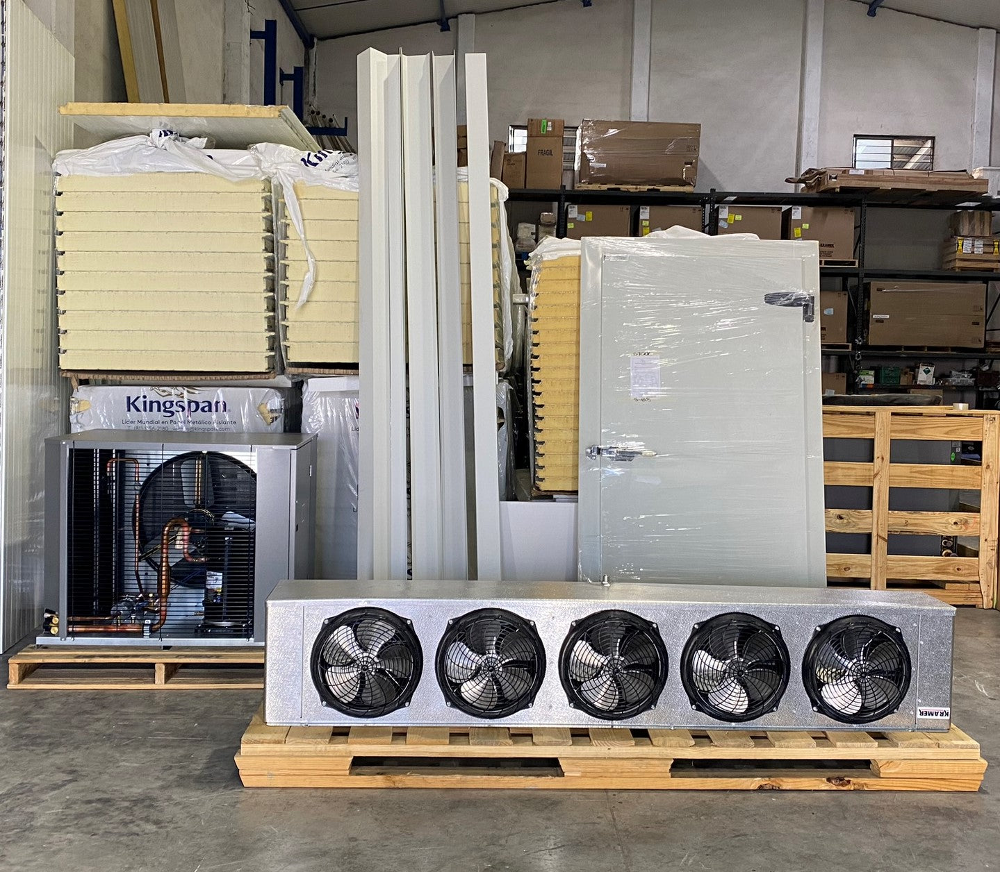 Cámara conservación de 2° a 6°C incluye Panel Modular Espuma Rígida 2.5" / (60mm) de Espesor en Color Blanco Cal 26/26 Núcleo de Espuma Aislante PIR Clase A KINGSPAN o TERNIUM, Molduras de lámina Cal. 24, Esquineros Interiores y Exteriores, Canal U, Molduras para Puertas, remaches, Tornillos y Selladores. Puerta abatible .89 x 1.89 mts tipo estándar Para Conservación de Panel Inyectado con Poliuretano. Lámina Pintro en Acabado Blanco, Unidad Condensadora marca Kramer para media temperatura, con capacidad nominal requerida, compresor SCROLL, para operar con 208-230/3/60, Refrigerante R-404A, Equipada con gabinete para uso exterior, Evaporador Marca Kramer deshielo por aire bajo perfil, 208-230/1/60
